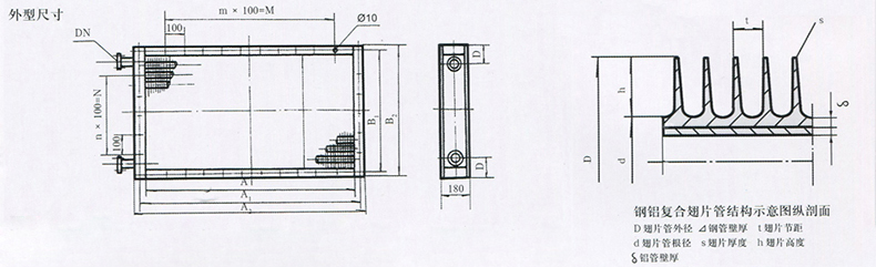 型號(hào) | 迎風(fēng)面積m2 | 散熱面積m2 | 凈通風(fēng)截面積m2 | 表面管數(shù) | 排數(shù) | 連接管DN(in) | 尺寸(mm) | ||||||||||